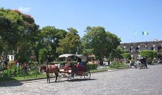 Главная площадь бывшей столицы Гватемалы Антигуа служит отправной точкой для большинства экскурсий по городу. Она расположена в самом центре образованной улицами гигантской решетки, в окружении прекрасных исторических зданий. На площади разбит парк, который как и сама площадь называется Центральным. Центральная площадь служит излюбленным местом встречи горожан и туристов. Сидя на лавочках в тени деревьев, здесь можно любоваться прекрасным дворцом генерал-капитанов, чья длинная двухуровневая аркада протянулась вдоль южной стороны парка. С востока на площадь смотрит фасад главного храма Антигуа - собора Святого Иосифа. Собор построен в 1541 году, к сожалению он сильно пострадал от землетрясения 1773 года, но был частично отреставрирован. С северной стороны площади расположен Музей Книги, среди экспонатов которого первая печатная машина Гватемалы, а также художественно-исторический музей Сантьяго-де-лос-Кабальерос В центре парка вы можете увидеть Фонтан Сирен - точную реплику оригинального фонтана 1737 года, выполненную в середине двадцатого века. Возле него часто выступают уличные музыканты.