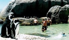 Кого точно не ожидаешь увидеть во время посещения африканской страны, так это пингвинов. Огромная популяция этих забавных птиц поселилась на пляже Болдерс недалеко от Кейптауна. Пингвины на пляже Болдерс появились в 1982 году. Поразительно, но тогда здесь обитало всего две гнездящиеся пары. За считанные годы популяция пингвинов увеличилась почти в тысячу раз и сегодня превышает 3000 особей. Не последнюю роль в этом сыграла ликвидация расположенной вблизи фабрики, занимавшейся поставками сардин и анчоусов, которые являются главными пунктами меню в ежедневном рационе пингвинов. Сегодня пляж Болдерс пользуется огромной популярностью у туристов. При этом людям запрещено приближаться к птицам ближе, чем на несколько метров.
