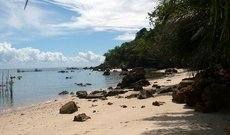 Пляж Понта-де-Педрас – это одинокий пустынный пляж, который начинается рядом с пляжем Порто-де-Сима. На его территории нет кафе или ресторанов – это тихий оазис для любителей пустынных пляжей и уединения. Только местный яхт-клуб пришвартовывает здесь свои лодки. Пляж находится в окружении родных тропических лесов, а в воде природные породы образуют бассейны. Они формируются в зависимости от прилива. Этот пляж не пользуется большой популярностью у туристов, так как это скорей переход к Гамбоа, а не самостоятельный пляж. Если проплыть в направлении Гамбоа, можно встретить еncosta de аrgila (красную грязь), которая славится своими полезными свойствами для кожи. Волны здесь небольшие, но иногда на берег выносится много водорослей. Сам пляж полностью усыпан песком, а густая растительность расположена вдоль береговой линии.