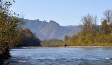 Гора Трезубец - это гора, расположенная у западного края хребта Ду-Ду-Гуш, считается одной из самых необычных гор Адыгеи. Скальная гряда возвышается над руслом реки Белой. Среди ее многочисленных вершин, оскалившихся в небо остроконечными пиками, выделяется три величественные скалы - Трезубец. Остроумные адыгейцы называют эту гору также "Тёщины зубы". Панорамы открывающиеся с вершин Трезубца воистину сказочные. На севере, на фоне громадных хребтов Азиш-Тау и Уна-Коз утопают в зелени игрушечные станицы, на юге виднеются белоснежные вершины кавказских гор, опоясанные темно-зеленым кольцом пихтовых лесов. Не зря об этом месте сложена легенда, по которой бог морей Нептун, поднявшись здесь из водных глубин и оглядевшись, заявил, что нет места на земле прекрасней. В знак этого он воткнул в землю свой трезубец, ставший горной грядой. Река Белая протекает через разлом в хребте, названный Большим гранитным каньоном. Место очень популярно у любителей водного туризма и скалолазания. Проложены туристические маршруты и к самой горе.