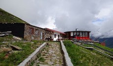 Восхождение на гору Чегет начинается с поляны, где расположены многочисленные гостиницы и кафешки. Здесь отправная точка двухкресельного подъемника, который доставит вас к знаменитому кафе «Ай», что в переводе означает Луна. Кафе расположено на высоте 2750 метров. Его круглое здание, примостившееся на искусственно созданной площадке прямо на склоне горы, уже много лет гостеприимно встречает лыжников и сноубордистов. Построенное в 60-ые годы, оно было первым и, пожалуй, единственным высокогорным кафе в СССР. Его изображение, растиражированное многочисленными открытками, фотографиями и значками, стало визитной карточкой Приэльбрусья. Место это поистине культовое. Кафе неразрывно связано с бардами и авторской песней. Говорят, что Юрий Визбор любил останавливаться в хижине у кафе «Ай». Здесь рождались тексты его новых песен и сюжеты для рассказов. В 90-ые годы кафе «Ай» послужило съемочной площадкой для фильма «Завтрак с видом на Эльбрус» - экранизации одноименной повести Визбора. Говорят, что в этом кафе кормят самыми вкусными хычинами – лепешками с картошкой и сыром или мясом. Со смотровой площадки кафе за чашкой душистого чая или ароматного глинтвейна в солнечный день приятно любоваться двуглавой вершиной Эльбруса и уходящей вдаль живописной Баксанской долиной.
