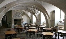В меню ресторана представлены разнообразные блюда итальянской и французской кухни по вполне умеренным ценам - средня цена обеда - около 30-35 лат. Ресторан предлагает довольно богатую винную карту - 137 видов вин, а также большой выбор сортов разливного пива. Интерьер ресторана, стилизованный под европейскую старину, создает ощущение комфорта своей интимностью. Особый уют придает настоящий камин в основном зале. По вечерам в ресторане играет живая музыка.
