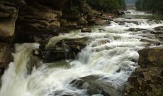 У Жонки каменистое неровное дно и быстрое течение. Все это в сумме создает частые пороги и водопады. Река берет свое начало довольно высоко - 1400 метров над уровнем моря, а её протяженность составляет 20 километров. Помимо этого в Жонке течет чистейшая родниковая вода, которая очень полезна для здоровья. Притом, она очень вкусна. Находим эту небольшую, но бурную речку и идем по хорошей дороге вдоль нее. От Жонки веет свежестью, поэтому тень от деревьев дает больше, чем просто прохладу. Обязательно захватите теплые куртки, иначе вместо воспоминаний об этой прогулке Вы будет помнить только борьбу с насморком и температуру. За одним из поворотов слышится гул падающей воды. Но водопад на реке Жонка нельзя назвать неким хаотичным и нестройным потоком. В его упорядоченности и заключается его привлекательность, ровно уложенные толстые бревна придают водопаду гармоничный вид. Ежегодно сюда приезжает множество туристов, чтобы полюбоваться горными ландшафтами и услышать невероятную музыку водопада. Кроме того, в долине реки Жонка можно посетить форелевое хозяйство, что оставит массу приятных и ярких впечатлений.