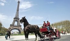 В центре Парижа возле Эйфелевой башни можно нанять экипаж для романтичной прогулки по главным достопримечательностям центрального района. Маршрут начинается у подножья Эйфелевой башни, проходит через Елисейские поля, площадь Трокадеро и Триумфальную арку. Экипаж, запряженный лошадьми, идет медленной рысью, позволяя любоваться окрестностями и фотографировать. Общей сложностью маршрут занимает один час. Такое путешествие пользуется большой популярностью у влюбленных. Экипаж отходит с одного и того же места каждые полтора часа. Внутри экипажа могут разместиться четверо взрослых или двое взрослых и трое детей. Внутри есть одеяла, подушки и пледы для уютного путешествия осенью и зимой. В качестве подарка всем гостям предлагается бутылка шампанского.