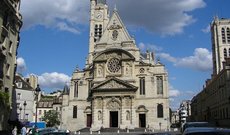 Церковь, название которой буквально переводится как "Святой Стефан на Горе", расположена в Париже на холме Святой Женевьевы. К 1222 году близлежащие кварталы были перенаселены, и аббатство Святой Женевьевы больше не могло вместить всех прихожан. Тогда и было решено построить невдалеке отдельную приходскую церковь, которой и стал храм апостола Стефана. Уже в 1328 году он был перестроен, но все равно не мог вместить всех страждущих. И в 1492 году на горе святой Женевьевы началось строительство, завершившееся только к началу XVII века. Церковь Святого Стефана входит в число наиболее интересных с архитектурной точки зрения памятников. Благодаря тому, что храм строился почти полтора столетия, в его внешнем и внутреннем облике перемешались элементы сразу нескольких стилей - вы найдете и готику, и ренессанс, и барокко. Прекрасен фасад, сочетающий в трех поставленных друг на друга фронтонах готические приемы и элементы Ренессанса. Это удивительное явление, ведь несмотря на исключительное своеобразие каждой детали, в комплексе они производят целостное впечатление. Интерьер храма ничуть не уступает фасаду в оригинальности - в нем сохранились роскошные витражи XVI-XVII веков. Но настоящей жемчужиной интерьера является великолепно выполненный амвон (поперечная галерея, отделяющая хоры и неф). Среди святынь церкви особого внимания заслуживает рака с мощами святой Женевьевы, в 451 году спасшей город от нашествия гуннов. Традиционно реликвии святой Женевьевы особо почитались во Франции, как своеобразный оберег в годы испытаний.