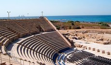 Римский театр в Кесарии – хорошо сохранившийся и полностью восстановленный театр, построенный Иродом. Следует отметить, что в наше время театр используется для оперных и балетных концертов. Он располагается рядом с морем, поэтому отсюда можно наслаждаться его потрясающими видами. Театр построил царь Ирод в 22-10 годах до нашей эры. Такого рода постройка стала первой в Израиле. Театр способен вместить в себя 3 500 – 4 000 человек. Полукруглая площадка за сценой была построена в 3 веке нашей эры. Рядом с театром находится точная копия надписи Понтия Пилата (оригинал надписи хранится в Музее Израиля), открытая в 1961 году. Вокруг театра находится византийская крепость 6 века, построенная в качестве защиты южной части города.