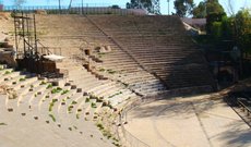 На склоне горы у моря располагался грандиозный римский театр. До сегодняшних дней сохранились руины нескольких каменных ярусов – зрительские ряды. Театр вмещал около 5 000 человек. Сохранились и массивные колонны - около полутора метров в диаметре. Выполнены они из розового гранита. Здесь можно увидеть обломки мраморных плит, статуи. Сцена же практически не сохранилась. Римский театр сегодня используется как площадка для выставок и различных представлений.
