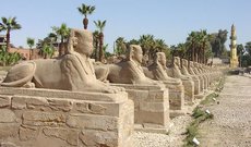 Аллея Сфинксов, соединяющая Луксорский и Карнакский храмы, располагается на западном побережье Нила, возле руин загородного дворца фараона Аменхотепа - «Дома Ликования». По обеим сторонам аллеи размещены 1350 изваянных из розового гранита статуй сфинксов – фигур с львиными телами и бараньими головами. Строительство аллеи длиной около 3 километров датируется периодом царствования фараона Нектэнебо – примерно 12-м веком до нашей эры. Когда-то это было место сбора священников во время религиозных празднеств. Недавно была завершена современная реставрация сильно разрушенного уникального исторического памятника. Сегодня он представляет собой огромнейший открытый археологический музей.