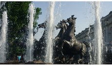 Фонтан «Гейзер» – главный фонтан Манежной площади и самый главный фонтан столицы. Каждый год, 30 апреля в 17:00, здесь происходит небольшое представление, под конец которого Мэр Москвы произносит слова «Фонтаны включить!» и выливает в чашу «Гейзера» воду из специального хрустального рога, а навстречу поднимаются первые струи. Струи фонтана выстреливают резко вверх, падают и снова выстреливают, подобно гейзеру вулкана. Фонтан является главным всего фонтанного комплекса, который идет от Александровского сада до Манежной площади. Он был установлен в 1996 году. С того времени поменялся только струйный дизайн, изначально струи взлетали вверх в виде прозрачных рюмок. Фонтан, на Манежной площади в Москве, «Гейзер», включает в себя композицию, состоящую из четырех коней в центре фонтана – «Четыре времени года», каждый из коней символизирует определенное время года. Скульптором всей композиции является Зураб Церетели.