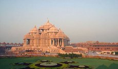 Акшардхам - уникальный храмовый комплекс(«резиденция Бога, которая не может быть перемещена»), раскинулся на 12 гектарах земли. Храм представляет собой скорее и мемориал, он покрыт мраморными скульптурами и окружен с трех молитвенный зал сторон озером, в который принесли воду из водоемов со всех уголков Индии. В комплекс входят великолепные прилегающие парки, кинотеатр, светомузыкальный фонтан, скульптурные композиции, крытый искусственный канал, по которому можно покататься на лодках, многочисленные сувенирные магазины и кафе. В архитектуре храма смешаны разные стили всей Индии. Он построен полностью из розового мрамора и не имеет стальной конструкции, как другие современные здания. Девять куполов и 234 резных столба, с 20 тысячами разных божеств (мурти) и 20 четырехгранными башенками (шихкар). По периметру здания находятся 148 фигур слонов. Храм по своей грандиозности превосходит многие подобные сооружения в мире, благодаря этому его включили в Книгу Рекордов Гиннеса.