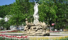 Фонтан «Ундина» представляет собой оригинальную скульптурную композицию в центральном городском парке - Курпарке. В каменной композиции запечатлена прекрасная и юная девушка, разбрызгивающая воду над окружающими ее водными обитателями и людьми, которые, по всей видимости, являются ее жертвами. Любопытно также, что сама статуя девушки выполнена из белого камня, а животных и людей - из коричневого, что придает особый колорит фонтану. К слову, Ундинами в германской мифологии называют духов воды в облике прекрасных дев, заманивающих своей красотой и очарованием мужчин в водные глубины, то бишь - русалок. Фонтан был открыт в 1903 году, автор произведения - австрийский скульптор Йозеф Кассин.