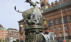 Фото, адрес и описание достопримечательности Фонтан у ратуши «Бык"ээээй" раздирающий дракона» в г. Копенгаген (Дания)