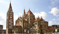 Кафедральный собор Сегеда известен также как храм Обета или Вотивный собор. Это очень любопытное здание в неороманском стиле. Собор обрамляют две устремленные в небо высокие башни, что создает странное оптическое впечатление. Храм словно находится в некой точке равновесия между двумя силами, тянущими его в противоположные стороны. Стены, сложенные из красного кирпича со светлой отделкой, очень красиво выглядят на фоне синего венгерского неба. Собор является довольно современной постройкой. Он был возведен в 1930 году. Внутри он также красив и необычен, как и снаружи. От обилия цвета и форм внутренней отделки даже можно устать, так много внутри собора разнообразного декора. Впечатляет роспись потолка и огромный орган, один из самых больших в Европе. Да и сам собор представляет собой одно из крупнейших в Европе религиозных сооружений. Внутри одновременно могут находиться не меньше пяти тысяч человек.
