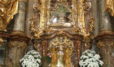 Паломничество католиков со всего мира в Храм Девы Марии Победоносной происходит уже не одно столетие. Их сюда влечет умилительная статуэтка из воска Иисуса-младенца – Пражского Езулатка, которую в 1628 году подарила костелу княжна Поликсена из Лобковиц. Эту статуэтку во всем мире знают как "Bambinо di Praga". Фигурка находится в стеклянной шкатулке на роскошно оформленном алтаре из мрамора. Гардероб маленького Иисуса внушительный – в нем более чем 150 ценных вышитых вручную облачений разных фасонов и цветов. Самым ценным считается облачение вышитое австрийской императрицей Марией Терезией.