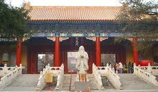 Храм Конфуция в Пекине был построен в 1302 году, а в 1911-м стал музеем. Это второй по размеру конфуцианский храм в Китае, он уступает только храму Цюфу в деревне Чжунни, на родине философа. Сегодня площадь храмового комплекса превышает 20 тысяч квадратных метров. Комплекс состоит из четырех дворов, расположенных на оси север — юг. По обеим сторонам первого из дворов размещены 198 каменных табличек, на которых выбито более 50 тысяч имен людей, выдержавших экзамен на знание трудов Конфуция при династиях Юань, Мин и Цин. Также в Храме размещены 189 каменных стел, на которых выбиты высказывания философа. Главным объектом храма, не считая памятника Конфуцию, является павильон Великой учености Дачэндянь. Здесь размещаются статуи учеников мыслителя и музейная экспозиция.