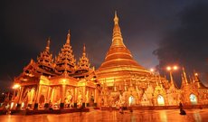 Буддийский храмовый ансамбль Шведагон - символ Мьянмы, почитаемая религиозная святыня. Это 98-метровый позолоченный купол-ступа, стоящий в окружении 70 мерцающих золотом небольших ступ, маленьких храмов и павильонов. В павильонах висят огромные колокола, один из них — Маха Тиссада — весит 42 тонны, а Сингумин — 23 тонны. В 1825 году англичане пытались вывезти из Бирмы Сингумин, но их корабль потонул, не выдержав тяжести груза. По преданию в Шведагоне хранятся реликвии четырех Будд: посох Какусандхи, водяной фильтр Конагаманы, часть туники Кассапы и восемь волос Гаутамы. Шведагон открыт для всех паломников и туристов. Находиться на территории ступ и пагод разрешено только босиком, потому что на эту землю когда-то ступал сам Будда. Подняться на платформу можно на лифте. По периметру платформы установлено 8 храмов, символизирующих 8 дней недели (по бирманскому календарю). Любой желающий может загадать желание в том храме, который символизирует день его рождения.