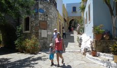 Традиционная критская деревня Аролиос, представляет собой очередную туристическую замануху, здесь греки делают всё чтобы выжать из туристов как можно больше денюшек, и им это удаётся. Ну во первых здесь вам предложат самостоятельно испечь хлеб, слепитьь из глины какую нибудь безделушку, научат делать критские чётки, покажут быт греческой деревни в старые времена, ну и конечно же накормят за ваш счёт греческой кухней(надо сказать блюда действительно очень вкусные ). Деревенька находится в горах неподалёку от Ираклиона, а так как она поддерживается спросом, то здания здесь выглядят сногсшибательно, здесь всё очень аккуратненько и красочно.Здесь же находится мини-отель, при котором обалденный бассейн,выполненный в античном стиле.