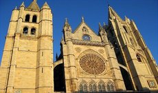 Готический Кафедральный собор Санта-Мария-де-Леон – архитектурная памятка XIII века, возведенная на месте римских бань по подобию реймского собора. Форма собора - в виде латинского креста с тремя нефами. По своим масштабам собор сравним с известным Собором Парижской Богоматери. Широкий западный фасад сделан из бледно-желтого камня. В сочетании со светом, проникающим в храм, он дал собору прозвище «Дом Света». Множество мифических существ украшает верхние и внутренние фрагменты помещения. Общая площадь витражей в соборе составляет около 1700 кв. метров. Особенностями собора являются разные по размерам и формам порталы, окна-розы, один из старейших хоров в Испании, скульптуры, такие как Вихрен-де-ла-Эсперанса и другие. Свой нынешний вид собор приобрел благодаря работе епископа Мартина Фернандеса на средства короля Альфонсо Мудрого.