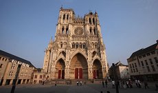 Кафедральный собор в Амьене был заложен в 1220 году, спустя 23 года были закончены башни фасада, а спустя еще 285 лет здание приобрело завершенный вид. Несмотря на такой длинный срок строительства, стиль собора определяется как "чистая готика". Амьенский собор является самым известным зданием в готическом стиле во всей Франции, также это самый большой кафедральный собор страны. Фасад собора украшен статуями гаргулий и химер. Во время реконструкции собора были обнаружены следы краски, сейчас на здании установлена цветная подсветка, позволяющая увидеть собор таким, каким он был в средние века. Внутреннее и внешнее пространство собора разделено на 3 яруса. На полу сохранилась мозаика, часть которой выложена в виде лабиринта. В реликварии собора хранится часть лицевой стороны черепа Иоанна Крестителя. С 1981 года собор входит в Список Всемирного наследия ЮНЕСКО.