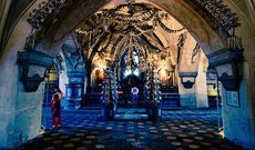 Костница - удивительная часовня, сюрреалистический интерьер которой полностью сооружён из человеческих костей. Находится сие атмосферное место в монастыре Седлица, что на окраине городка Кутна Гора, в 80 километрах от Праги. История столь странного, но интересного места берет свое начало в 1278 году. Именно в этом году аббат Йиндржих, возвращался из Иерусалима, где прихватил щепотку земли с Голгофы для монастырского кладбища. Тот факт, что в монастыре теперь была святая земля, привлек массу тех, кто предпочел для упокоения землю святую, а не простую. Волна клиентов накрыла место в 1318 году во время эпидемии чумы (30.000человек). Не удивительно, что места стало не хватать и подобная ситуация перестала устраивать руководство монастыря, которое распорядилось в случае новых захоронений, старые кости из земли извлекать и складывать их в подвале собора. В 1784 году император распорядился, чтобы монастырь закрыли, а его имущество и земли купили Шварценберги. Новых хозяев груда костей монастыря не вдохновила, и они наняли мастера резьбы по дереву, Франтишека Ринта, которого и попросили соорудить там что-нибудь в готическом стиле. Труды его впечатляют: люстра, составленная из черепов и лопаток, вазы из костей, пирамиды из бедренных костей, автограф, выложенный из челюстей, костяшек пальцев и прочих деталей человеческого скелета. Вот такой «смертельный креатив» привлекает миллионы туристов в свои скелетные стены. На всю работу, по разным данным, у мастера ушли останки около 50 000 человек.