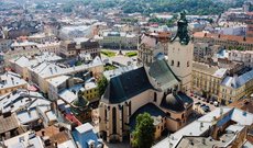 Костел Успения Пресвятой Девы Марии или Латинский собор - главный католический храм Львова - расположен на Кафедральной площади в историческом центре Львова недалеко от площади Рынок. Это величественное здание – единственный уцелевший памятник архитектурной готики в городе. Собор строился в течение ста тридцати трех лет – с 1360 по 1493 год. Но и после окончания строительства костел постоянно достраивался и дополнялся, обретая, помимо готических, черты стилей ренессанса и барокко. Одной из основных доминант исторического центра Львова является пятиярусная семидесятиметровая колокольня храма. В шестнадцатом столетии вокруг собора было построено множество часовен, служивших усыпальницами для львовской знати. До наших дней сохранились только часовни Боимов и Кампианов, ставшие единым целым с архитектурным ансамблем Латинского собора. Внутренний интерьер собора богато украшен скульптурой и фресками. Особое внимание привлекают замечательные витражи, изготовленные на рубеже XIX и XX столетий.