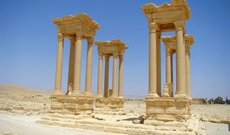 Тетрапилон - локальная достопримечательность сирийского города Пальмира, представляющая собой монументальную архитектурную конструкцию, состоящую из колонн и каменных платформ. Вместе с прочими историческими памятниками древней Пальмиры Тетрапилон признан культурным наследием Сирии и находится под эгидой организации ЮНЕСКО. Тетрапилон - одна из наиболее сохранившихся конструкций среди руин Пальмиры. Тетрапилон состоит из четырех монументальных оснований, над каждым из которых возвышаются четыре высокие колонны с плоской платформой наверху. Сооружение представляет собой своеобразную триумфальную арку - такие арки во времена античности устанавливали на перекрестках крупных дорог или обрамляли ими городские площади. Тетрапилон - очень впечатляющее сооружение. Высота одних только массивных колонн составляет семнадцать метров. Одна из шестнадцати колонн изготовлена из розового мрамора, остальные вытесаны из камня. Ранее на вершине каждой из четырех платформ были установлены статуи, но до настоящего времени они не сохранились. Тем не менее древний сирийский Тетрапилон всё равно производит неизгладимое впечатление на туристов, по праву считаясь самым красивым сооружением древней Пальмиры.
