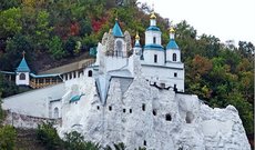 Еще одним замечательным храмом, расположенным на территории Святогорского заповедника, является Николаевская церковь, расположенная на меловой скале. Архитектура храма выполнена в стиле украинского барокко, XVII века. Николаевская церковь однонефная и имеет три купола: восточный купол – меловый, центральный, выполнен из кирпича, а западный – из дерева. Храм имеет интересно решения алтарной части - она вырублена из мела. Церковь отличается необычной композиционной идеей: меловый утес изысканно перекликается с красивой живописной панорамой. Строительство храма началось после обрушения верха скалы, с расположенной на ней пещерной церковью. К сожалению, имена авторов строительства не известны. В 1844 году, вслед за повторным открытием монастыря, церковь «пережила» реконструкцию. При этом сохранились стилистические отличия храма. Во время Великой отечественной войны (1941-1945 года) памятник понес значительный ущерб: была разрушена колокольня. Работы по восстановлению Николаевской церкви проводились в 1984 – 1989 годах.