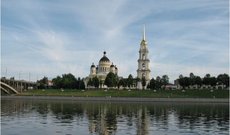 Спасо-Преображенский собор – жемчужина исторического центра города Рыбинска. Прородителем Спасо-Преображенского собора была деревянная церковь в честь апостола Петра, покровителя рыбаков. В XVII веке на месте обветшалой деревянной построили каменную, во имя Преображения Господня, которая стала соборной в 1778 году, затем ее перестроили и в 1804 году рядом с ней возвели новую, каменную колокольню. Взору горожан предстала устремленная в небо почти стометровая свеча, украшенная колоннами. Проект собора, прежде чем оказался в Рыбинске, участвовал в конкурсе на строительство Исаакиевского собора в Петербурге и занял там третье место. В 18831-1851 гг. по проекту группы петербургских архитекторов во главе с А. И. Мельниковым на месте одноимённой церкви XVII века Петра и Павла был воздвигнут Спасо-Преображенский собор. Работы по строительству шли тринадцать лет, но результат превзошел все ожидания. Огромное здание в форме куба венчали мощные купола, опирающиеся на массивные барабаны, северный и южный фасады украшали высокие колонны. Внутреннее убранство собора также ошеломляло своей идее. Пол выложен гранитными плитами, стены отделаны под белый мрамор. Для оформления интерьера израсходовали более пятисот килограммов позолоченного серебра. Мастер из Ростова Великого В.М. Бычков сделал для собора огромный четырехъярусный иконостас, в котором были древние иконы XV века. В центре собора под бархатным балдахином поставили главную реликвию города — нарядное кресло, сделанное специально к приезду Екатерины II. Сегодня Спасо-Преображенский собор воспринимается как единый архитектурный ансамбль, созданный по единому проекту. Однако пятиярусная колокольня построена на 50 лет раньше самого храма, предположительно по проекту костромского зодчего-самоучки Степана Воротилова. Её архитектуре присуща и мягкая живописность барокко, и изящная сдержанность классицизма, в отличие от величавой архитектуры Собора.