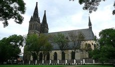 Церковь Святых Петра и Павла находится в Вышеграде, она была основана в начале XI века чешским князем Вратиславом II. В летописях сохранились записи, что даже сам князь принимал участие в заложении фундамента. Храм несколько раз перестраивался и менял свой облик и стиль. Неоготический вид базилика приняла на рубеже XIX-XX веков, этот облик сохранился до нашего времени. Внутри храма расположены склепы нескольких членов королевской династии. Последняя реконструкция здания прошла в конце XX века. Храм, являющийся религиозным и культурным памятником Вышеграда, прекрасен не только снаружи, но и изнутри своим убранством, росписями в стиле модерн и сохранившимися картинами середины XIV века.