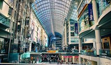 Торговый центр Eaton Centre Toronto, расположенный в канадском городе Торонто, занимает площадь, равную нескольким городским кварталам. 15-этажное разноуровневое здание находится на Yonge Street - знаменитой улице города, и очень выделяется на фоне остальных зданий. Украшением интерьера торгового центра являются скульптуры животных, и особенно следует отметить стаю уток, летящих над головой посетителей. В торговом центре расположены бутики мировых марок, уютные кафе и крупные рестораны. Здесь можно провести весь день и, конечно же, потратить уйму денег. Любителям качественного шоппинга следует обратить внимание на канадские марки одежды, которые в последние годы завоевывают подиумы и любовь модников и модниц со всего мира - Mercy, Lida Baday, Ross Mayer и другие.