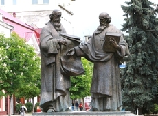 Фото, адрес и описание достопримечательности Памятник Кириллу и Мефодию в г. Мукачево (Украина)