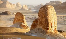 Национальный парк "White Desert" расположен севернее оазиса Фарафра. Много тысяч лет назад этот участок пустыни был дном огромного океана. Затем вода сошла, а на поверхности остались карстовые образования, сформировавшие потрясающие воображение пейзажи. Такого места, как Белая Пустыня, пожалуй, на Земле больше не найдешь. Рельеф местности здесь достаточно ровный, поэтому хорошо путешествовать по ней пешком, или на автомобиле. Второй вариант будет не слишком удобен, поскольку песок очень мягкий. Попасть сюда не так-то просто - вначале необходимо получить специальное разрешение властей, но местные гиды помогают решить эти вопросы достаточно быстро. В пустыне идеально чисто, поскольку туристы после себя ничего не оставляют. За порядком здесь следят очень тщательно, поэтому весь мусор идет в переработку. Белой пустыню называют из-за ее белоснежных карстовых образований, ярко выделяющихся на фоне желтого песка. Одно из самых интересных карстовых образований - белая скала, балансирующая на белом столбе, словно вот-вот упадет. Виды здесь абсолютно фантастические, напоминающие не то далекую планету, не то арктический пейзаж.