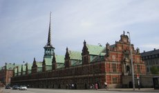 Биржа в Копенгагене была учреждена указом Кристиана IV в 1625 года и на протяжении 350 лет (до 1974 года) занимала элегантное здание со шпилем на острове Слотсхольмен. Оригинальный шпиль «из хвостов драконов» — влияние развивавшейся во время строительства здания торговли с Китаем