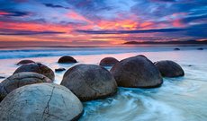 На побережье Отаго в Новой Зеландии недалеко от небольшого поселка Моераки, вдоль пляжа Коекохе можно увидеть огромные сферические камни, это знаменитые валуны Моераки. Благодаря им, эта маленькая деревенька стала известна во всем мире. Около 60 миллионов лет назад эти валуны серого цвета были сформированы на дне моря. Некоторые из валунов Моераки весят несколько тонн и составляют до 3 метров в диаметре. Существуют легенды относительно происхождения столь необычных камней. Некоторые, например, верят в то, что это следы инопланетной жизни, остатки древних кораблей пришельцев. Другие, что это останки людей, плывших в легендарном каноэ Araiteuru и потерпевших крушение у Matakaea. Есть даже теория, что это окаменелые яйца динозавров. Все камни имеют различные структуры: одни - гладкие, другие – шершавые, отдельные расколоты на части или с трещинами. Что интересно, внутри валуны полые, кристаллические. Моераки — очень заманчивое место как для любования драматическими прибрежными пейзажами, так и для любопытных геологических исследований.