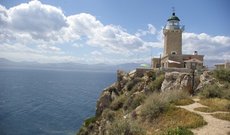 Фото, адрес и описание достопримечательности Маяк на мысе Малагави в г. Лутраки (Греция)