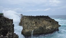 Если вы приехали на Бали, то обязательно включите в свои планы посещение настоящего природного чуда - Water Blow. Это уникальное природное явление разбивания волны о прибрежные скалы. Высота водяного гейзера, обрушивающегося на смотровую площадку превышает человеческий рост и окатывает всех зазевавшихся с головы до ног. Наблюдать удар волны можно во время приливов и в другое время, когда уровень воды в океане поднимается (это происходит циклично, согласно фазам луны). Самым зрелищным сезоном считается август, волне не хватает напора и она зачастую не достигает края обрыва. Это природное событие ежедневно притягивает несколько сотен туристов, желающих запечатлеть себя на фоне водяной стены. Место отлично подойдет для свадебной фотосъемки и для семейного альбома. Но, все-таки, не забывайте об осторожности, не подходите очень близко к обрыву. Если уровень воды в океане максимальный, волна легко сбивает с ног. Однако, если вы приехали не в сезон, посетить место все же стоит. Water Blow расположен на территории одноименного парка. Его особенность в том, что все деревья высажены представителями различных стран, так что прогулка по этому интернациональному лесу может стать полноценной познавательной экскурсией. Water Blow расположен на полуострове Букит в районе фешенебельных отелей высокого уровня сервиса Нуса Дуа (Nusa Dua). Самым понятным ориентиром по пути к Water Blow можно назвать отель Grand Gyatt, расположенный недалеко от знаменитой торговой галереи "Bali Collection". Направляясь от отеля к океану вы увидите большие каменные ворота с надписью "Water Blow", через ворота по специально оборудованной дорожке попадаете прямо в точку обрушения волн. Стоимость посещения парка - 35 рупий (около 100 рублей).