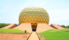 Ауровиль переводится как «город рассвета». Он был заложен в 1969 году по инициативе Мирры Ришар как проект Юнеско и министерства образования Индии. Здесь находися главный центр медитации – Матримандир. Строительство продолжалось 37 лет, от закладки первого камня 21 февраля 1971 - до завершения в мае 2008 года. Само здание имеет вид огромного шара, который полностью укрыт круглыми золотыми дисками и окруженное кольцом залов медитаций. Каждый зал является олицетворением определённого качества человеческого существа (смелость, искренность, доброта) и способствует его развитию. В помещении, где проходит медитация, люди сидят вдоль стены, погруженные в тишину. Чтобы не нарушить эту тишину, перед входом посетители снимают обувь, а затем им выдают мягкие белые носки для более тихой ходьбы. Стоит отметить, что у здания нет ни одного угла, ни прямых стен, ни лестниц. Вся задумка строения выполнена в стиле сюрреалистичной архитектуры: с дорожками, зависшими в воздухе, колоннами, не достающими до потолка. Поэтому у человека, только вошедшего в Матримандир, уже создаётся ощущение спокойствия и душевного умиротворения. Внутри не используется искусственное освещение, все довольствуются светом, попадающим в комнату из небольшого отверстия в потолке.