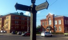Этот знак стоит посередине между двух столиц России. Выглядит в виде небольшого столбика со стрелками, на которых указаны города. Эти стрелки показывают в строгом направлении к Москве и Питеру.