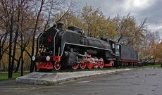 Фото, адрес и описание достопримечательности Инсталляция паровоза 40-х годов в г. Тюмень (Россия)