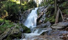 Водопад Била Стрж находится у границы Чехии и Германии в двух километрах от Черного озера. Воды Белого ручья, падая с оврага, образуют великолепный 13-метровый водопад. Водопад состоит из нескольких уровней и каскадов, общая высота которых составляет тринадцать метров, самый высокий спад воды имеет семиметровую высоту. Над ним была построена смотровая площадка, с которой вы сможете полюбоваться мощью и шумом воды. Доступ к самому водопаду запрещен, т.к. с 1972 года ущелье (79 га) было объявлено национальным заповедником с целью сохранения «девственности» природы. К водопаду ведут пешие и велосипедные туристические маршруты.