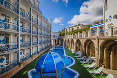 Этот оформленный в восточном стиле отель находится в курортном поселке Кореиз, в 3 минутах ходьбы от побережья Черного моря, и располагает открытым бассейном и фитнес-центром. Гостям предоставляются бесплатные услуги трансфера от/до пляжа.Все номера отеля "1001 ночь" оформлены в индивидуальном стиле и оснащены кондиционером и мини-баром. В каждом из них имеется балкон, а ванные комнаты оборудованы феном.В оформленном в восточном стиле ресторане "1001 Ночь" гости могут заказать блюда европейской и восточной кухни. Блюда могут также быть поданы на летней террасе, а в баре у бассейна гостям предложат различные напитки.Гости могут расслабиться в спа-центре, оснащенном русской, турецкой и финской сауной, или искупаться в открытом бассейне. На территории отеля имеются столы для игры в настольный теннис и бильярд, работает кабинет массажиста.Удивительный замок Ласточкино гнездо расположен в 5 минутах езды от отеля "1001 Ночь", а расстояние до исторического Ливадийского дворца составляет 8,5 км. До Ялты можно доехать за 15 минут, а аэропорт Симферополя находится в 110 км от отеля.