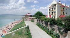 Этот отель с бесплатным Wi-Fi и настольным теннисом расположен в поселке Приморском, в 10 метрах от пляжа на Черном море. К услугам гостей номера с кондиционером и чайником.Все номера отеля "Приморский дворик" оформлены в нейтральных тонах и оснащены холодильником. Во всех номерах есть балкон с видом на Черное море.В столовой отеля можно отведать местные блюда и вина. Также имеются принадлежности для барбекю.Гости отеля могут поиграть в бильярд и настольный теннис или почитать книгу в библиотеке. Юные гости могут весело провести время на детской игровой площадке.Предоставляется трансфер до Феодосии, расположенной в 15 минутах езды от отеля "Приморский дворик". До аэропорта Симферополя - 130 км.