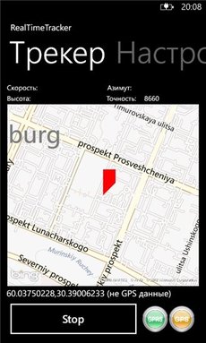 RealTimeTracker 1.0.0.0 для Windows Phone - Аналог аппаратных GPS-трекеров для отслеживания вашего текущего местоположения в режиме Online на сайте LiveGPSTracks.com.Для начала работы с программой требуется пройти несложную регистрацию на сайте LiveGPSTracks.com и ввести уникальный номер номер трекера, который можно найти в этой программе на вкладке «Настройки».В зависимости от настроек, можно не только изредка отправлять свое местоположение, но и получить запись полноценного трека, что бывает полезно во многих ситуациях.